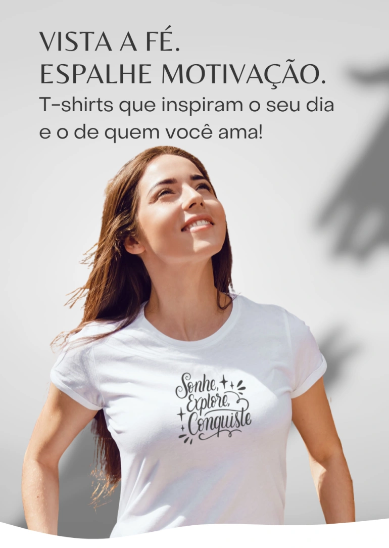 Cada T-shirt carrega uma frase motivacional pensada para tocar o coração, lembrar da força que existe em cada um de nós e trazer um pouco mais de esperança, fé e amor para o dia a dia.